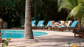 Upon arriving at Hamanasi we are greeted by guest services manager Karina and the smiling reception staff. They are quick to learn our names and prove to remember them throughout our stay. The open and inviting main building hosts the reception area, bar and restaurant and is framed with a spacious porch trimmed with flowering bougainvillea. The east side of the porch expands into an outdoor dining area with a breathtaking view of the pool and beach which is thick with coconut trees garlanded with hammocks and intimate sitting areas just inches from the tranquil sea. A relaxing vibe warms the scene with an infectious mood that insists you slow down and smell every hibiscus along the way.