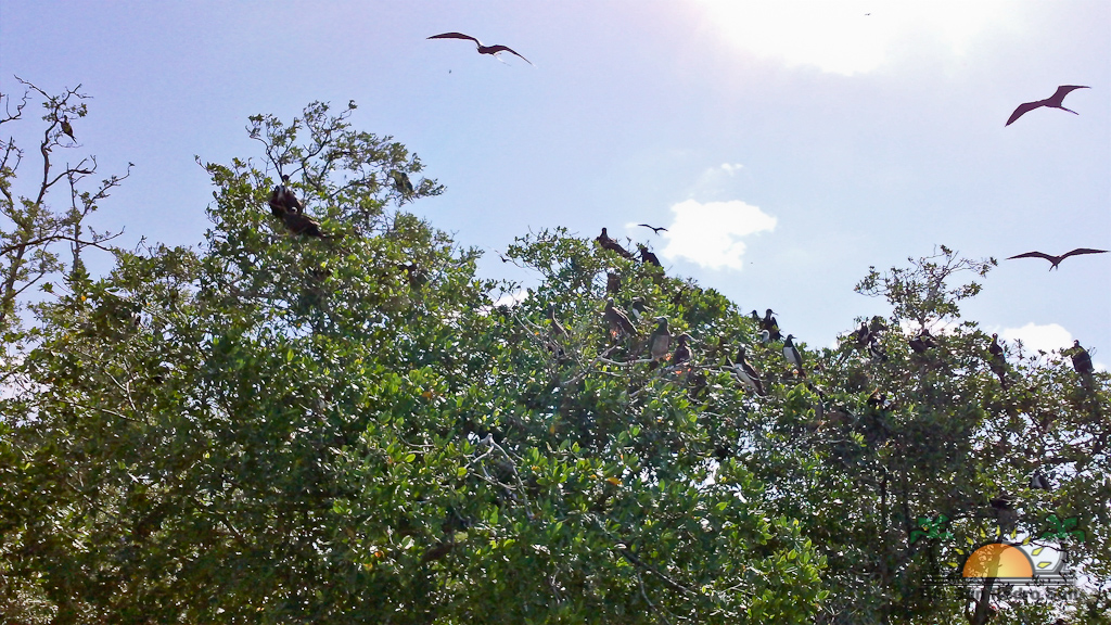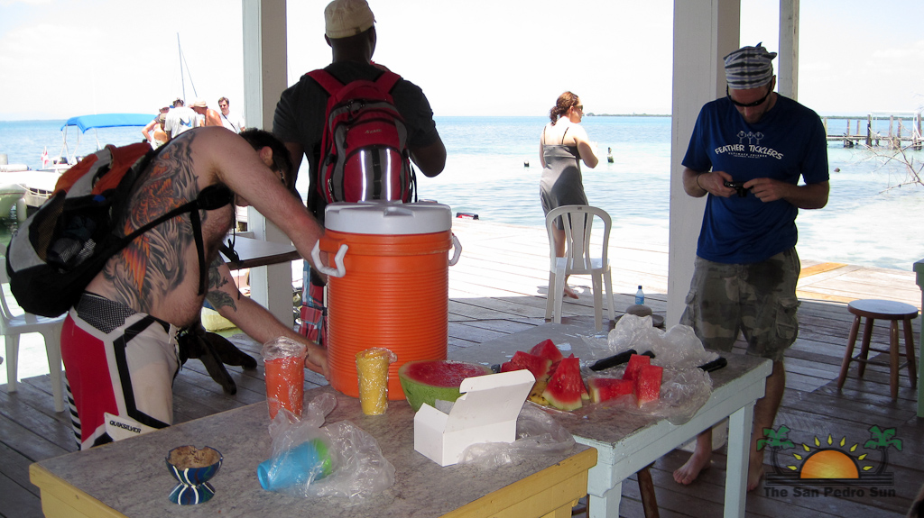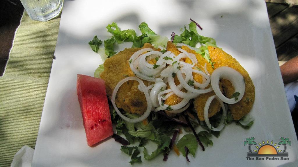 Hamanasi is as an adventure and dive resort offering a wide variety of guest activities. As a snorkeling addict I couldn’t wait to see what the waters have to offer so we sign up for a half-day trip with Captain John and first mate Terrill. Departing at 8AM we head out to the reef some 35 minutes away. John points out Coco Plum Caye which is oddly thick with pine trees. John explains that after a devastating hurricane the mangrove trees were wiped out and residents replanted pine trees, a bad idea in the long run as they are not suited to the environment and do not prevent erosion like the mangroves do, it is a strange sight to see a forest of pine trees towering on a tropical island! Along the way we also boat close to Bird Island, where hundreds of frigate and brown boobies roost. Fluffy white baby birds poke out of cluttered nests while the sky is full of soaring frigates, a super fun sight to see. Our first stop we snorkel in deep waters teeming with large tarpon and permit fish, it was a new experience for me and a tad unnerving swimming with fish that are almost as big as me! The waters grow shallower as we drift the area and the coral formations are busy with colorful tropical fish. Next stop is Tobacco Caye where we disembark for a snack of watermelon, cookies and juice while exploring the quintessential Caribbean island…it is now on my MUST STAY list for future travels! Rejuvenated from our tasty treats its’ back into the crystal clear water where we drift-snorkel the channel at Tobacco Caye. John is quick to spot several lobster along the way, and although it’s not lobster season he still takes the opportunity to give us a closer look at this tasty crustacean. Wishing we could devour the creature, we settle for imaging how delicious he would taste on the grill smothered in butter and garlic! After a good hour in the water it is time to head back to Hamanasi where we are eager to have lunch.