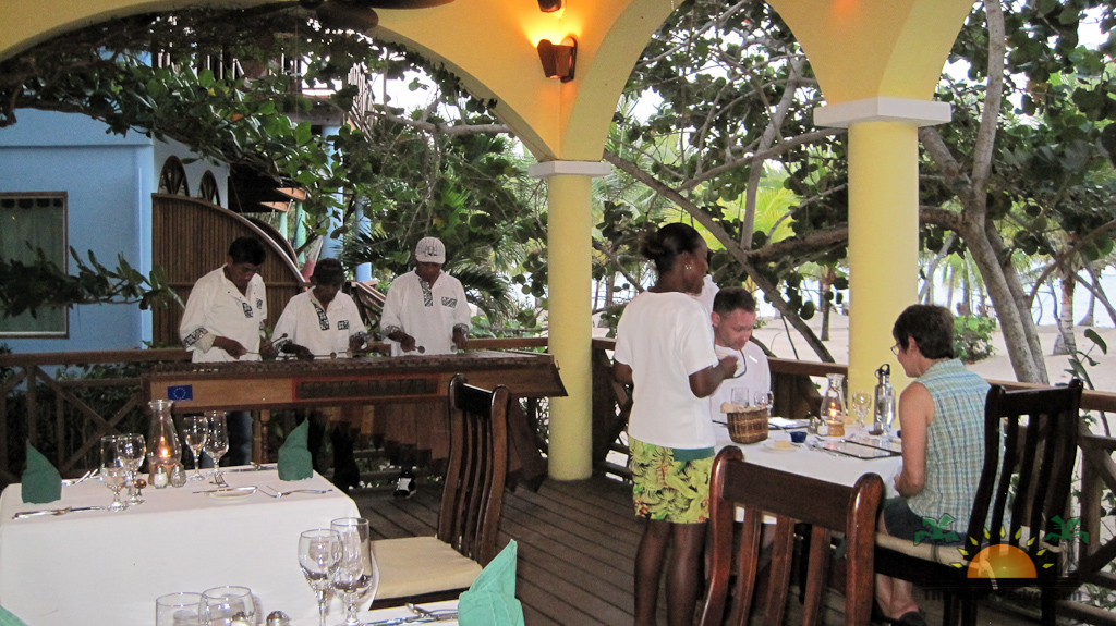 During our two-night stay we indulge in delightful meals prepared with the best in local ingredients. Breakfast in an open buffet offering a variety of fresh fruits, eggs, bacon or sausage, cereals, breads, juices and coffee or tea. For lunch we enjoy delicious salads, chicken wraps, tasty wings and burritos. Dinner is an unforgettable treat where we devoured amazing seafood chowder with a hint of coconut, veggie stuffed grouper fillets with caramelized plantains and a dessert of decadent chocolate cake with coconut ice cream. Of course their exceptional bar served up refreshing tropical cocktails and their wine selection offered the perfect complements to whatever meal you might choose to have. With the village of Hopkins nearby, one night we dine out at “Love on the Rocks”, a hip hot-rock grill restaurant where renowned Chef Rob Pronk has guests cooking their own meals on smoking hot lava rocks. The food was fun and delicious and we enjoyed our diner while entertained by Garifuna drummers.