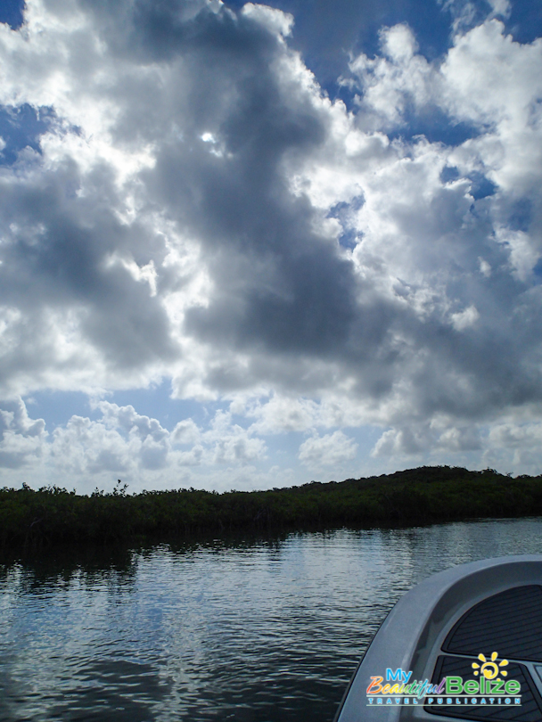 The boat heaves with action, as Mike secures it while Alex begins prepping to cast. It’s our first attempt and having zero experience with casting, I’m apparently going to reel them in instead. I obviously have a long way to go, but I’m enthusiastic and ready for whatever. Alex casts out and I study the movement closely, wondering if I’ll ever be able to do it myself someday. It’s a waiting game on the flats, and despite a sighting, the fish were not biting. Not ready to give up, we move through a variety of spots and stalk. We’re as quiet as possible, not wanting to spook any of the potential catches, and I’m reminded of my grandfather’s stories of hunting. They would be gone for a few days, camped out deep in the Maya Mountains, stalking their prey as silently as possible, only firing when one was in sight. It was the same on the water, a waiting game, a silent stake-out under the sun, eyes trained on the waters for just one subtle movement before a line is cast in hopes of reeling in the prey.
