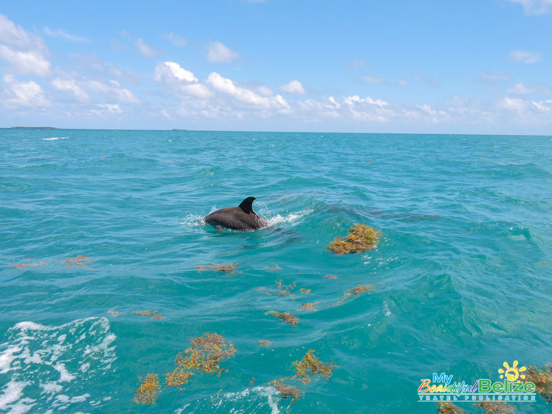 “It’s good luck to see dolphins,” William, our excited boat captain exclaims as he slows our speeding vessel down and sharply turns back to where he just spotted crescent-shaped dorsal fins breaking the water. “There, you can see two of them,” he points as we quickly grab our cameras and steady our stance on the rocking boat. Our eyes follow Williams direction and as we skim the choppy sea steel-black dolphin backs crest the surface as the pair swim in unison. We marvel at their graceful beauty as they disappear into the blue abyss and we indeed feel lucky, and more excited than ever to reach our Hatchet Caye destination some 20 miles east of the Placencia Peninsula. Not once during the 1 hour, 15-minute boat ride do we feel “alone” on the vast blue expanse, the dolphins and Captain William are good company, and from near and as far as the horizon the seascape is dotted with emerald isles. Some of the larger ones sit populated with cottage clusters while others are secluded islands graced with ribbons of white sandy beaches or no more than a modest tangle of mangrove habitat.