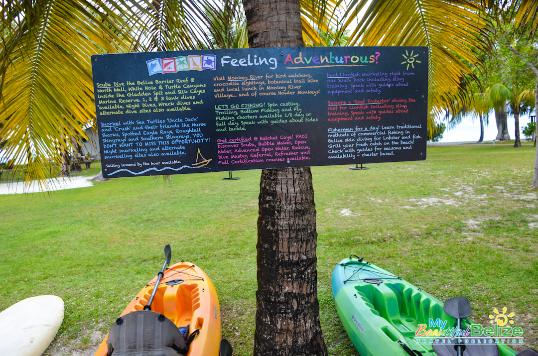 But don’t let this tiny slice of tropical heaven fool you when it comes to BIG adventures, which they offer in abundance! Resort guests are welcome to use their large selection of non-motorized water “toys”, and your choices include kayaks, pedal boats, paddle boards and Hobie Cats complete with complimentary sailing lessons if needed! Surrounded by world-class dive sites, they also offer diving tours and certification classes and fishing in the area attracts anglers from around the world!