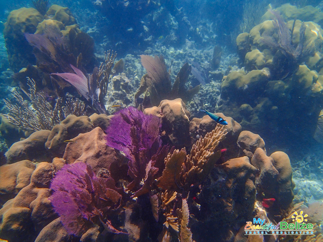 As much as I love the water toys and fishing, for me, it’s all about the snorkeling! The coral formations around the caye are super healthy and teaming with a kaleidoscope of marine life. The following day we start from the main pier where we spend more than two hours snorkeling around half the island, then take a lunch break and finish snorkeling the other half of the caye! Never in water deeper than eight feet, through warm, crystal clear water we spot Queen, Gray and French angelfish, trunkfish, cowfish, trumpetfish, tons of colorful wrasses and parrotfish, neon gobies, butterfly fish, grouper, sea stars and anemones among gorgeous varieties of coral. The resort also offers guided snorkel trips to nearby sites such as the Silk Cayes or you can snorkel with turtles within the Gladden Spit Marine Reserve.