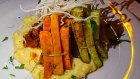 As guests at Hidden Valley Inn one evening we dine on Garifuna Cere Soup, Empanadas Mestizo style, and choose our entries from Blackened Grouper filet, Ox-tail in a tomato base with garlic mashed potatoes and veggies, and Two-bean Vegetable Enchiladas. For dessert, we indulge in Rum Flan and shared a Fresh Fruit Platter. The food was beautifully presented and thoughtfully prepared with fresh flavors and local spice. We devoured every bite!
