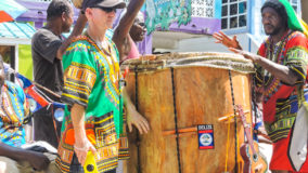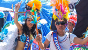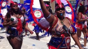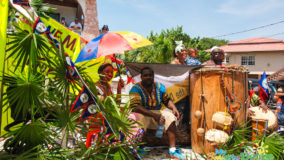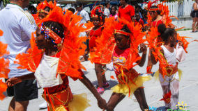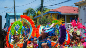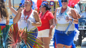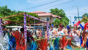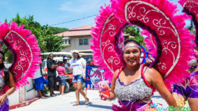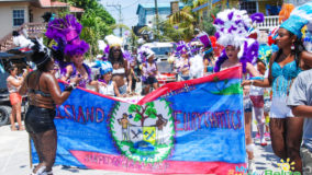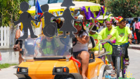 With soca music blaring from behind golf carts, pick-ups, trailers and even a couple of big trucks, revelers followed in tune, winding and grinding to the contagious beats. Of course, everyone was decked out in either patriotic outfits or colorful elaborate costumes. I’m telling you, the Independence Day vibes just cyant done!
