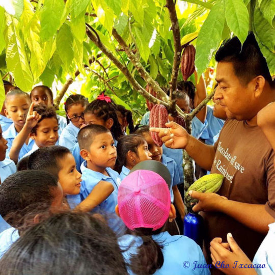 This family is not only dedicated to making chocolate products but to education, organic agriculture, agroforestry, archaeology, and anthropology. Proclaiming that chocolate will save the rainforest, Juan explains, “Chocolate does not come out of a candy bar wrapper, it comes from a tree. In Belize, the motto on our national flag is “under the shade of the tree I flourish”. Our national tree is the mahogany tree – and our cacao trees require shade from other trees like the mahogany tree…75% [shade] in higher elevations and 50% in low lying elevations. Why would I want to slash and burn? Instead, plant according to nature amongst other trees respectively.”