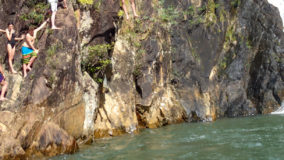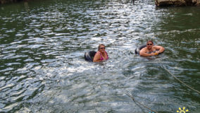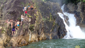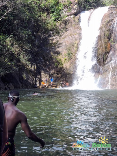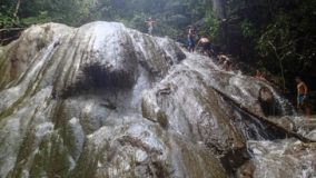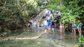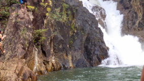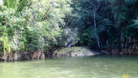 Our day progresses when we return to the boat, and we slowly tour the river, feet trailing in the water while we scour the terrain for monkeys, birds, iguanas or who knows what else. Some of us plunge into the water to be towed in trailing inner tubes from behind the boat. Next stop is the Rio On waterfall, where some of our brave passengers scale the falls and plunge into the roaring water below. It’s breathtaking to watch – which is what I did from the comforts of the boat; I can’t image being so daring! It is here that we enjoy our packed-lunch and feed our bread crumbs to the little fish who have gathered around us to beg.
