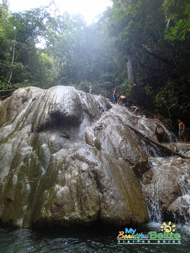 Our day progresses when we return to the boat, and we slowly tour the river, feet trailing in the water while we scour the terrain for monkeys, birds, iguanas or who knows what else. Some of us plunge into the water to be towed in trailing inner tubes from behind the boat. Next stop is the Rio On waterfall, where some of our brave passengers scale the falls and plunge into the roaring water below. It’s breathtaking to watch – which is what I did from the comforts of the boat; I can’t image being so daring! It is here that we enjoy our packed-lunch and feed our bread crumbs to the little fish who have gathered around us to beg.