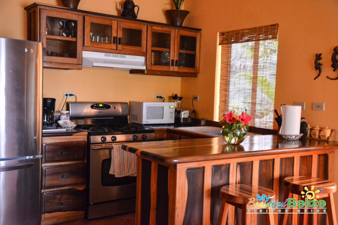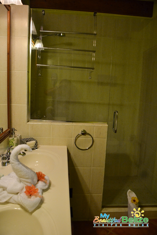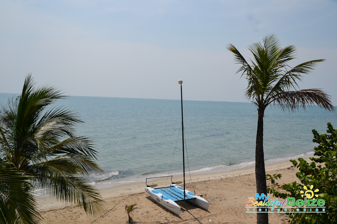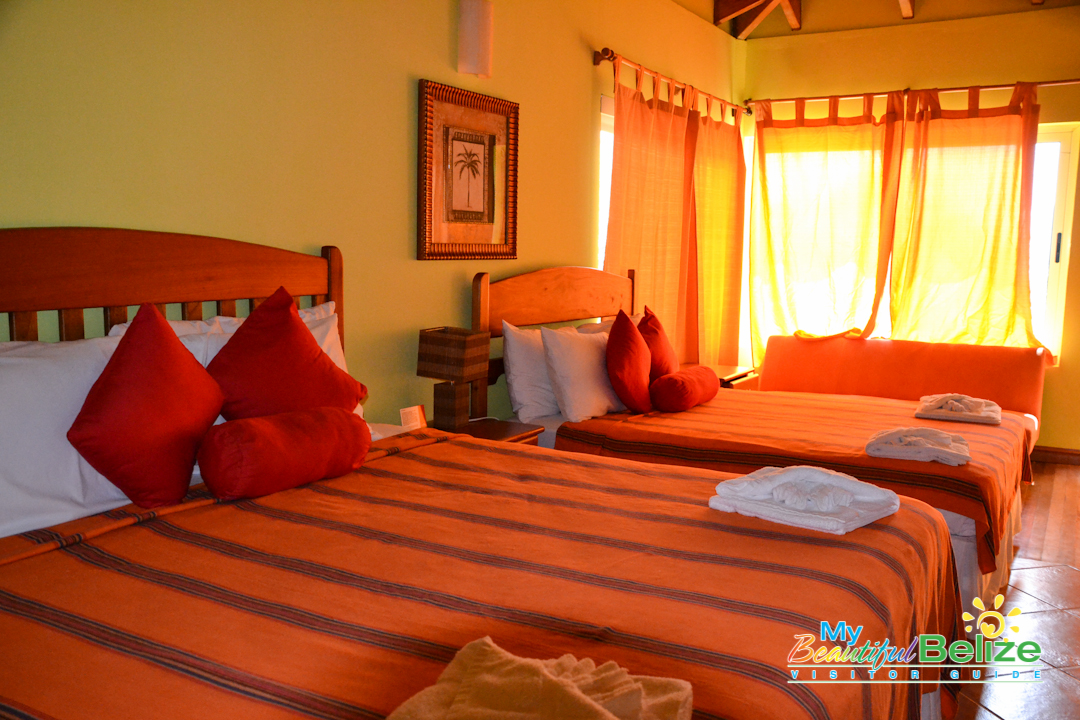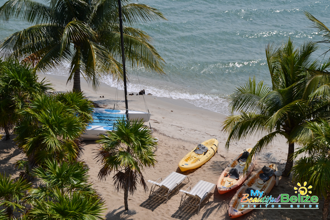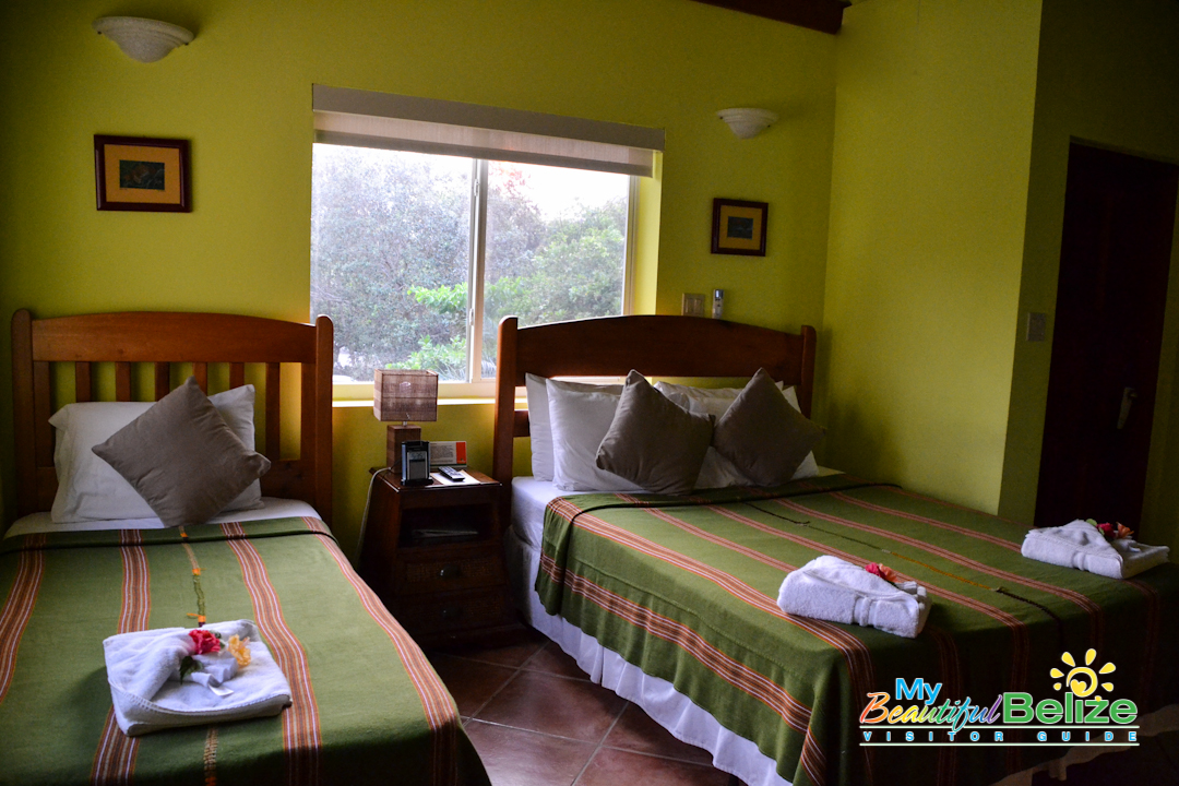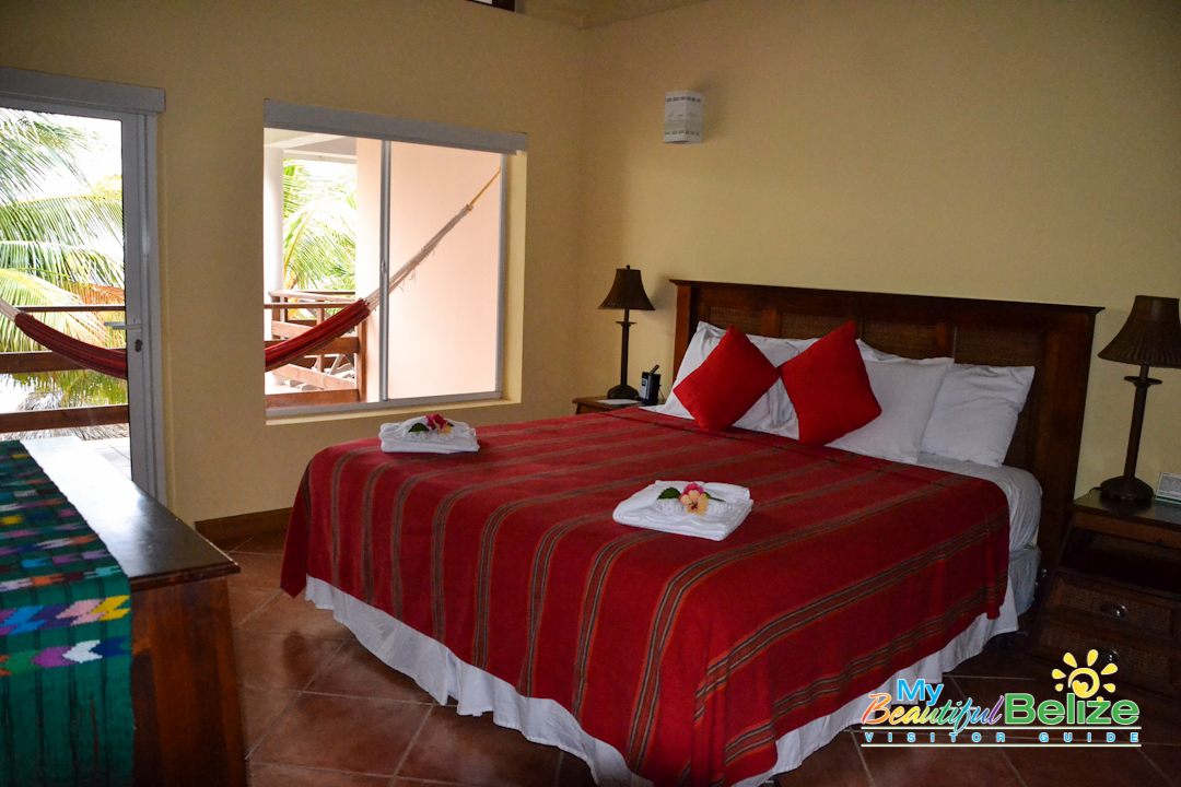 Located on the beach at the Placencia Peninsula, Laru Beya (‘on the beach’) is a quiet resort offering respite and relaxation – just what we needed. We got our keys from a smiling, friendly Raquel at front desk, and luggage in hand we made our way to the room. As we neared the top of the stairs, we could hear the crash of the waves on the beach, and felt the cool sea breeze. We stepped in and were absolutely delighted at the spacious lodgings we would be staying in. Of course the first thing one does is head out to see the view!