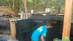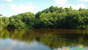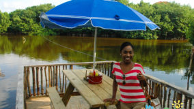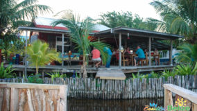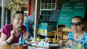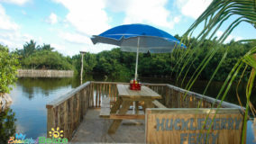 With two wooden patios overlooking one of the island’s many salt water lagoons, which is also home to Jaws the resident crocodile, Lazy Croc is the perfect place for both a great meal and sightseeing. Unfortunately, my partner in crime, Monique, and I didn’t get to see the croc Jaws; regulars say he’s a bit shy with newcomers. Nevertheless, we got our wildlife fix spotting several green iguanas and various birds; however don’t bother asking me the names because I’m not a birder like some people (side-eyes the boss). We enjoyed the atmosphere and the sightseeing from the comfort of our reserved seating on the “Huckleberry Ferry.” Yes, the Huckleberry Ferry – I swear that’s what it’s really called! It’s a picnic table set atop a floating platform that takes customers on a smooth ride from one end of the lagoon to the other, all while they enjoy their meal and take in the scenery. Very idyllic and indeed, unique and fun.