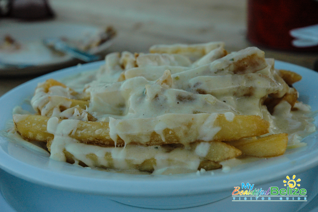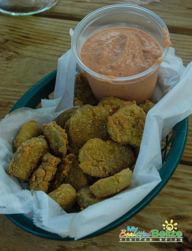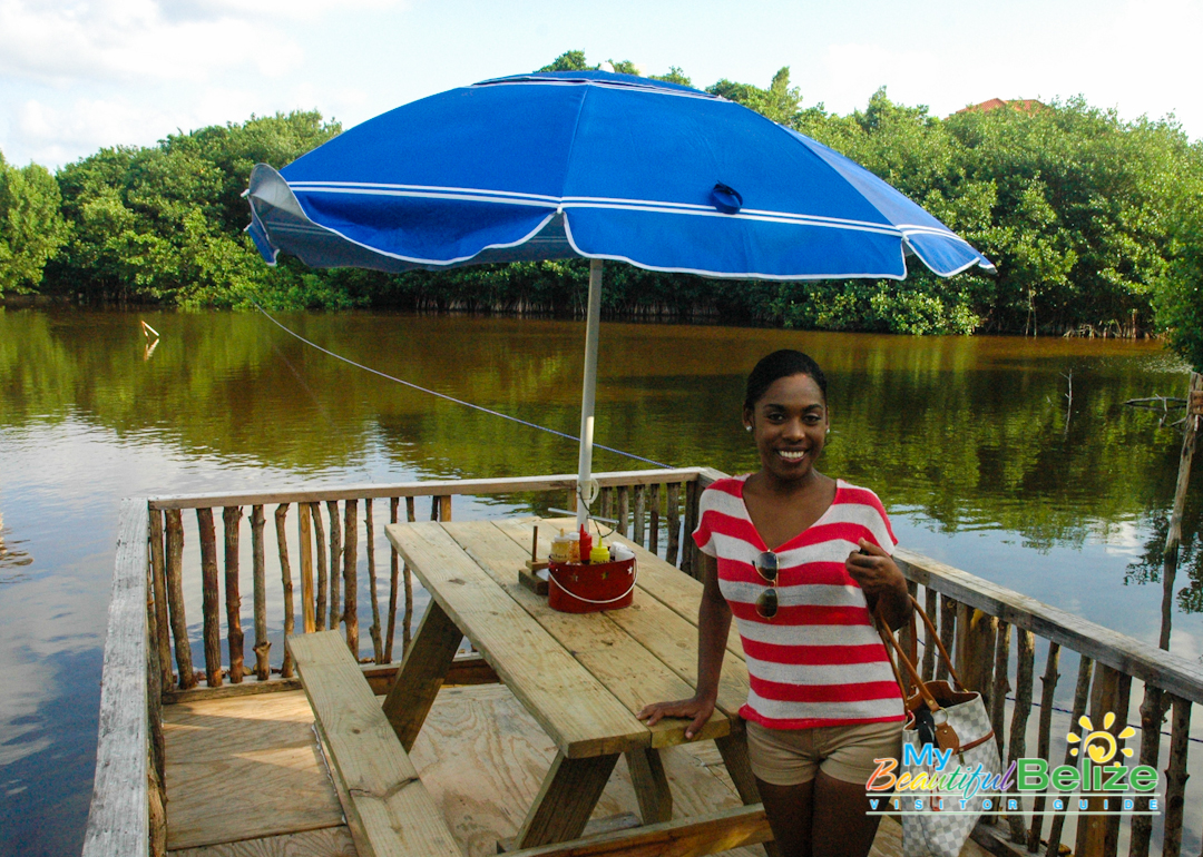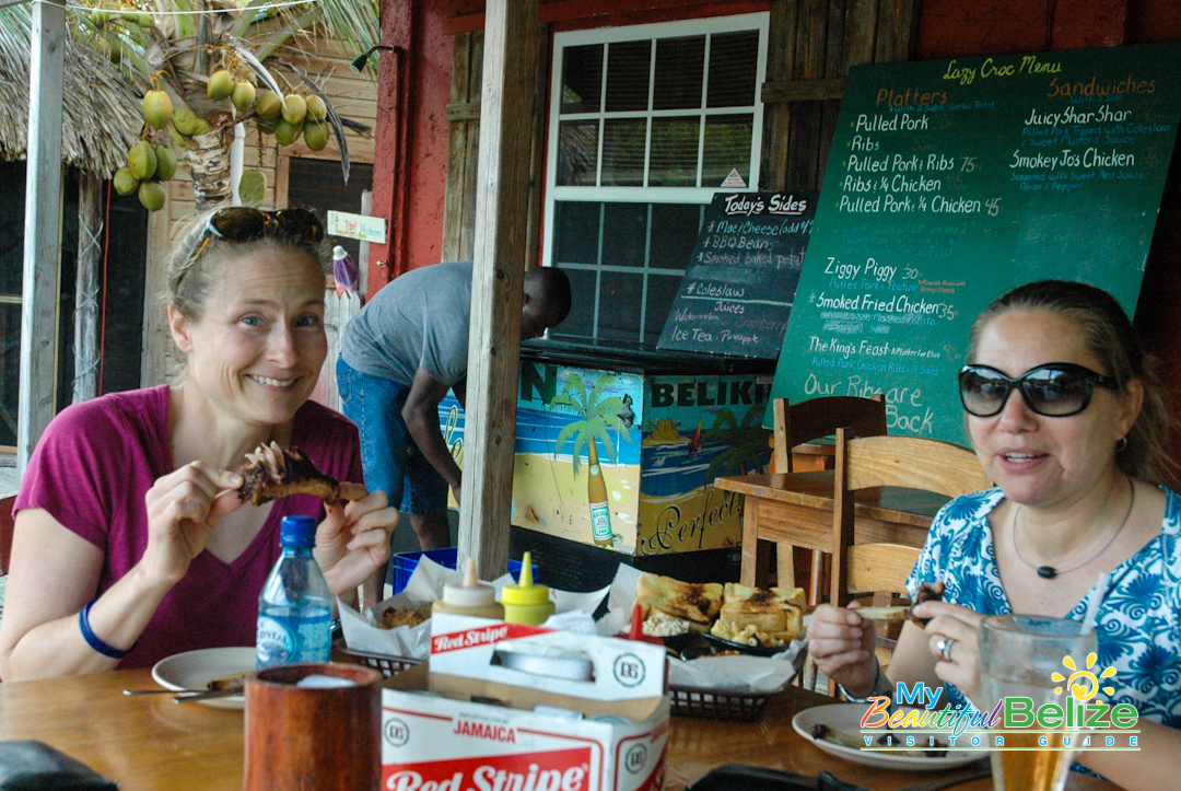 With two wooden patios overlooking one of the island’s many salt water lagoons, which is also home to Jaws the resident crocodile, Lazy Croc is the perfect place for both a great meal and sightseeing. Unfortunately, my partner in crime, Monique, and I didn’t get to see the croc Jaws; regulars say he’s a bit shy with newcomers. Nevertheless, we got our wildlife fix spotting several green iguanas and various birds; however don’t bother asking me the names because I’m not a birder like some people (side-eyes the boss). We enjoyed the atmosphere and the sightseeing from the comfort of our reserved seating on the “Huckleberry Ferry.” Yes, the Huckleberry Ferry – I swear that’s what it’s really called! It’s a picnic table set atop a floating platform that takes customers on a smooth ride from one end of the lagoon to the other, all while they enjoy their meal and take in the scenery. Very idyllic and indeed, unique and fun.