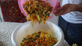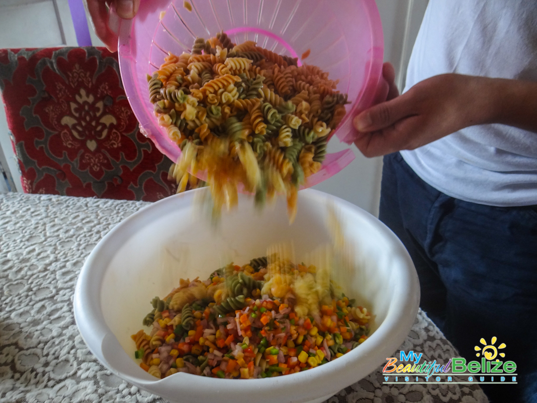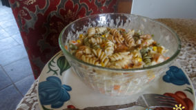 My love for pasta and lobster are pretty even, so I seem to always insist on my mom making this. It doesn’t take much to do- it’s one of those quick fixer uppers that will have you eating all day. All you need is a couple pounds of cooked lobster tails- preferably fresh (I get my lobster straight from the sea), a pack of cooked fusilli pasta, half pound diced tomatoes, one medium size thinly diced purple onion, one medium size diced green pepper, one small can sweet corn (you can add fresh corn kernels of you can get it), two minced garlic cloves and one small can of light whipping cream (I like Nestle Brand). Preparation is simple once the lobster and pasta are cooked and cooled, toss them in a bowl with all the other ingredients. Add salt and pepper to taste and a drizzle of olive oil and give it a good toss. And that is all it takes to make a Cold Island Lobster Pasta Salad. I personally like to top of my salad with some parmesan cheese and some garlic bread on the side, but you definitely don’t need them! It’s perfectly delicious as it is!