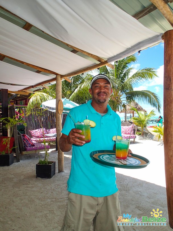 If the Maruba name sounds familiar, it should! This new beach klub is the brainchild of the super creative and fun sisters Alexandra and Franziska Nicholson from the renowned Maruba Resort Jungle Spa in Maskall Village in the Belize District and Kama Lounge (now closed) here in San Pedro. Replete with their flare for bright colors, bold patterns, lots of lounging space and flowing sheers, the stage is set with groovy techno beats pulsating in the background.