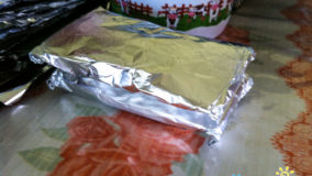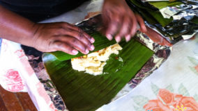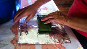 But first, you’ll need to get two banana leaves! (Most international ethnic stores sell them- and once you wrap the bollo once, foil can seal the deal.)