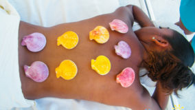 Up next was the sea shell massage, one I was quite eager to find out more about. I learned that the seashells themselves have mild exfoliating properties. Like the hot stones, the sea shells can also be heated and applied to tense muscle areas to foster, release or to simply warm the muscles, thus unwinding and ultimately relaxing them as well. This time Amy oiled my back, with the same rich aromatic oils, then placed the heated shells in a strategic alignment along my spine…ahhhhh I was as close to heaven as one can be. As I lay there, savoring the moment I thought to myself: ‘A seashell? Really? How could so much relaxation be achieved through such simple methods?’ Then I thought to myself again: Self what’s with the ninety-nine questions? Quit thinking so much and just go with the flow! After heeding to some great advice from ‘Self’, that I did! The shells were re-heated and placed on various other areas of my back, allowing them all to experience the almost surreal level of muscle relaxation. I didn’t speak a word, didn’t move a muscle and certainly didn’t bother thinking again! I just lay there, eyes closed with a smile on my face, happy to be serenity’s captive. After the shells were removed the heated cloth was applied once more, the perfect complement to a heavenly experience.