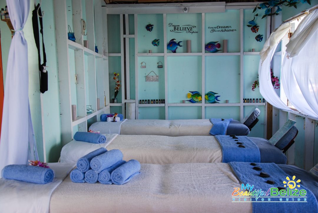 Oasis is one of the newer establishments in San Pedro Town. A warm invitation was extended to us by the owner, and we were more than happy to accept. So we made our way along Fido’s pier to the cute cabaña styled spa. An extensive spa menu offered everything from Swedish massages to sun burn therapy, from facials to manicures and pedicures. There is surely something there for everyone looking for a bit of rest and relaxation.