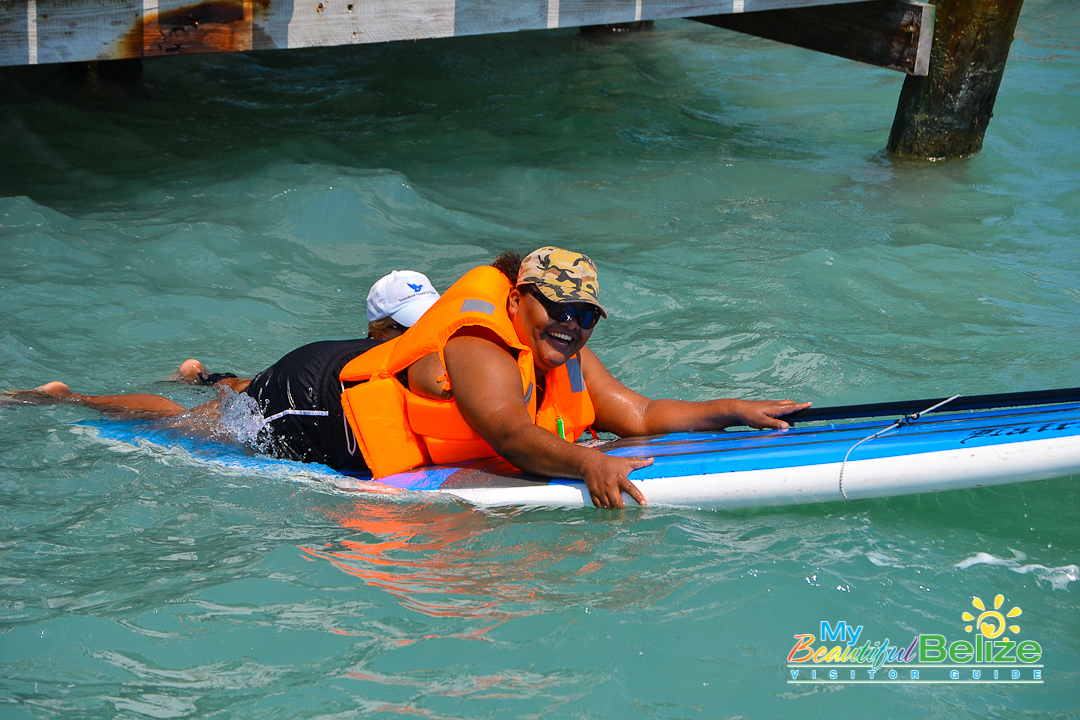 Paddle boarding is catching on, and Pam Killen is at the forefront of the movement, encouraging her friends to try it out. Thank you ever so much Pam, for your patience! I will try again! Those looking to rent a board to paddle out to sea can do so from Island Divers Belize, located on the dock at the Holiday Hotel. 226-4800.