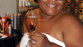 When Carole removes the chocolate masque from my back, and wax is slowly peeled away from my feet, I have completely recovered my spirits, and I feel so much better, ready to face the day. That begins with a refreshing sip of champagne, each glass of bubbly infused with a gorgeous hibiscus rose that Carole shares with us. Cheers indeed!