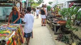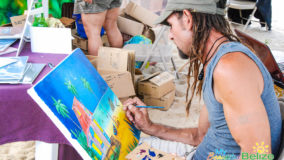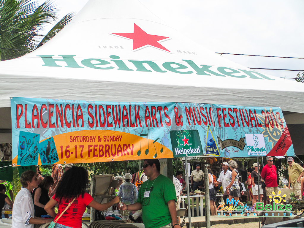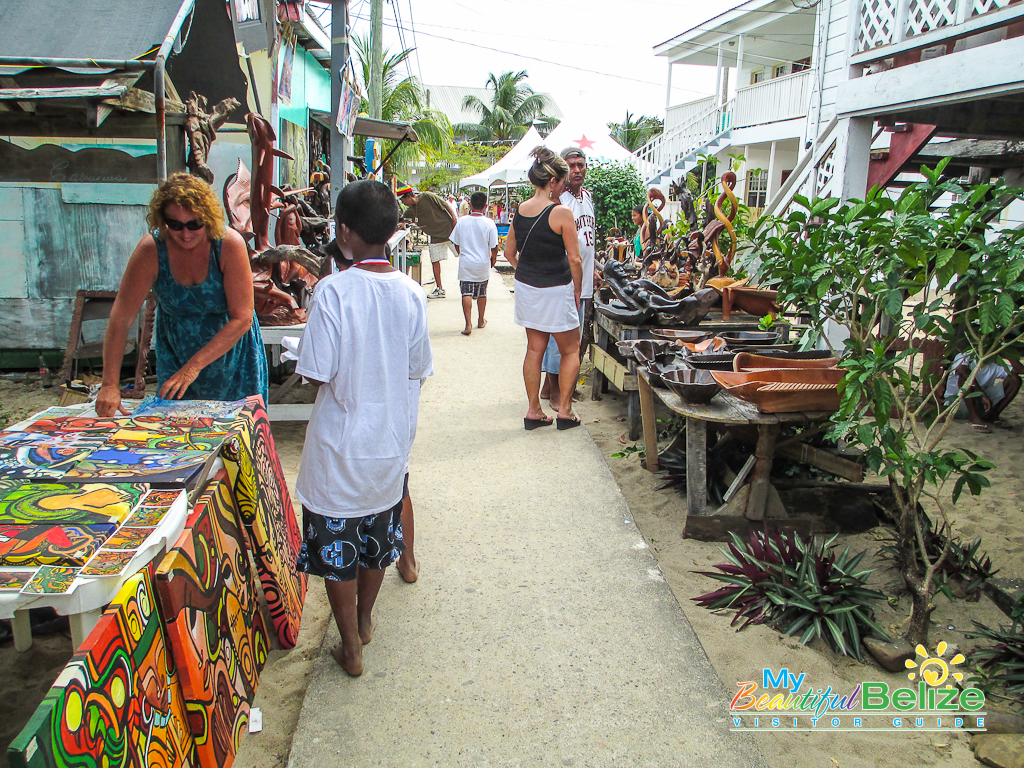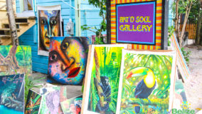 Within the beachside village of Placencia winds their historic sidewalk. Almost a mile long (4,071 feet to be exact) and a mere four-feet wide, we were tickled to learn that this walkway had earned the Guinness Book of World Records title as the narrowest main street in the world! This is where the two-day 10th annual Placencia Arts and Music Festival was taking place and I’m pretty sure we walked all 4,071 feet of the sidewalk, at least twice! The passageway hardly feels like a street as you stroll down the picturesque sidewalk, which is bordered with vibrant blooming trees, tropical flowers and Caribbean colored homes and businesses. Here the parade of artists splashed the walkway with their rainbow creations, ranging from hand carved woodwork, jewelry, sculptures, photographs, tailored clothing and of course lots of glorious, colorful paintings. Music emanated from the beachside park, the air was rich with the scent of grilled foods and children were busy flying kites into the blustery sky. With plenty of inviting restaurants and bars along the way we of course had to stop and indulge our thirst with a cold Belikin, or two! The area offers a pleasant variety of eateries and watering holes, so depending on what you fancy or what your budget allows, you are sure to find the perfect spot to imbibe in the laidback, beachside ambiance.