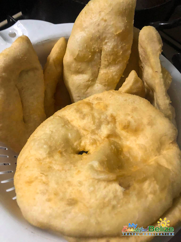 A real treat, however, is the fried delights known as Fry Jacks. Made with the same tortilla dough, fry jacks are the epitome of indulgence. Once flattened into a nice round circle, some cooks would slice the dough in half, then drop in a pan of hot oil, letting it fry up nice and puffy, turning and ensuring all sides are evenly browned and perfect.