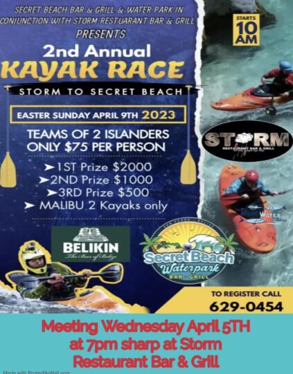 Another fun activity for the family is the 2nd Annual Kayak Race on Easter Sunday, April 9th. Starting at 10 AM, teams of two will take on the challenge to paddle from Storm Restaurant, located on the lagoon side of San Pedro Town Center, to Secret Beach. Prizes will be given to the top three finishers.