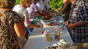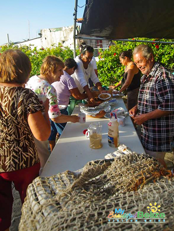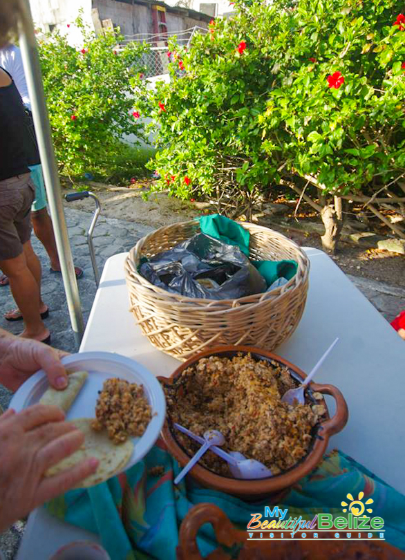 After the “La Bajada” mass celebration, traditional churchgoers gathered outside the church and out on the beach, for “El Alba.” El Alba is a traditional fisherman activity that welcomes the first sunrays that burst through the eastern horizon on the first day of Saint Peter’s celebration. It represents the light of hope for fishermen out at sea and in San Pedro, as is the old tradition, a fisherman’s breakfast is served. With the assistance of the San Pedro House of Culture and the National Institute for Culture and History (NICH), hash fish and refried beans served on freshly baked, hot corn tortillas (referred as Cutz) was given out to those in attendance. It was served with an option of hot coffee or a chocolate drink.