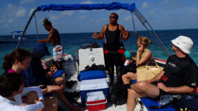 I shudder to think what I would do without her healing advice and I quickly board her ambulance (I mean boat) and with sirens wailing (in my mind) Diving Mistress Enes, guide and boat captain Russell and first mate the very adorable Joshua hurry me and other afflicted patients (I mean guests) off to the #1 sea hospital in Belize…Hol Chan Marine ER, whoops I mean RESERVE!