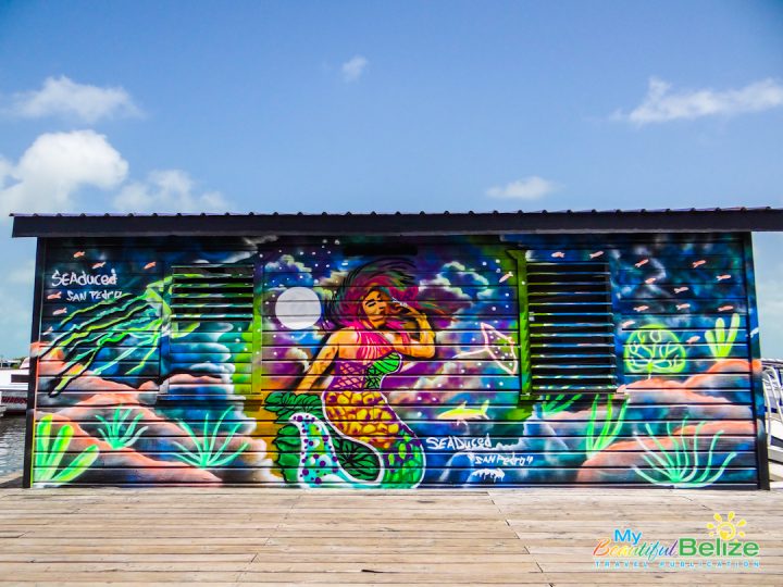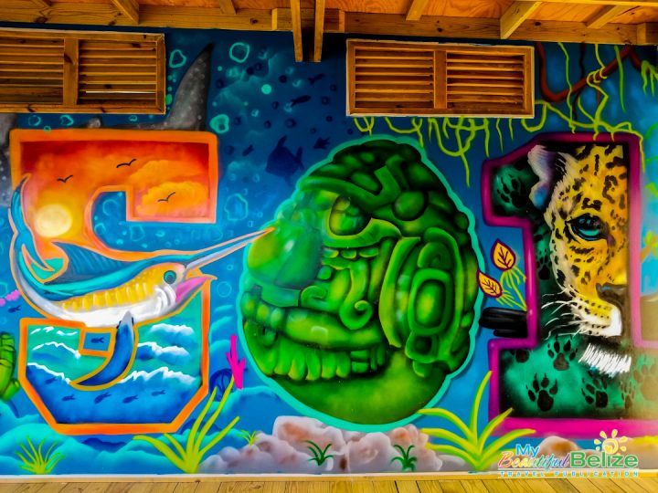 Other signs are quite clever, incorporating recognizable elements of Belize, like our flag displayed in the shape of a permit fish for a fly fishing business or the several fish shapes forming a tiburón (shark in Spanish) for a local lounge. San Pedro is well known for its fly fishing and the Meso-American Reef, making these signs iconic to both San Pedro and Belize. The building which houses the government protection agency offices and museum, Hol Chan Marine Reserve, displays a beautiful, hand-painted undersea mural.
