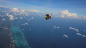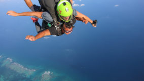 From then on, it was pure adrenaline-fueled yelps of delight. As the parachute fluttered in the hard breeze, and cold wind whipped my cheeks back, I marveled at the sight below. Hues of blue not found in the crayon box made up the Caribbean Sea. In the distance I could see the white crest of the waves breaking over the reef, and directly below, development, mangroves, patches of wooded land, and more blues and greens of the water that surrounds us.