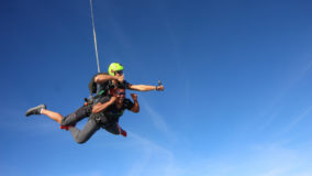 But then I felt the tug of the parachute, and before I could even brace myself, the safety harnesses kicked in and I was jolted back to reality by the tightly secured harness – phew!