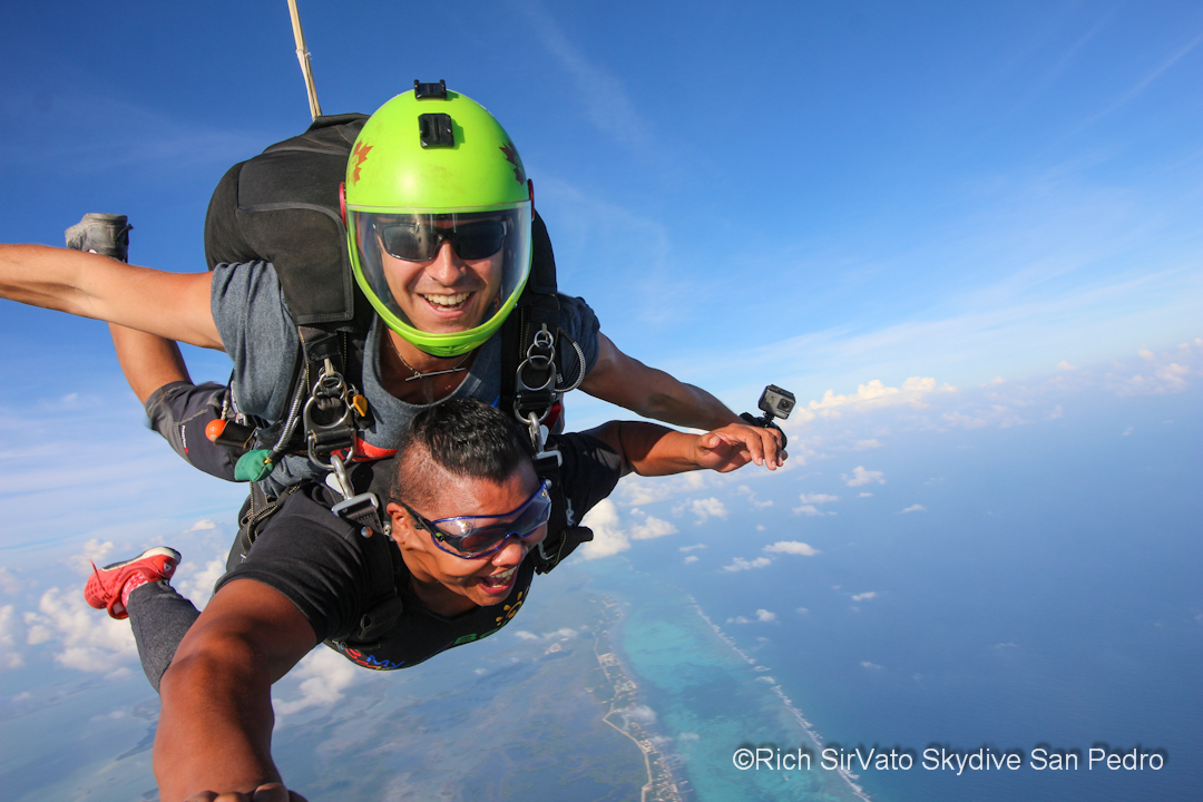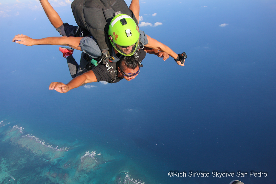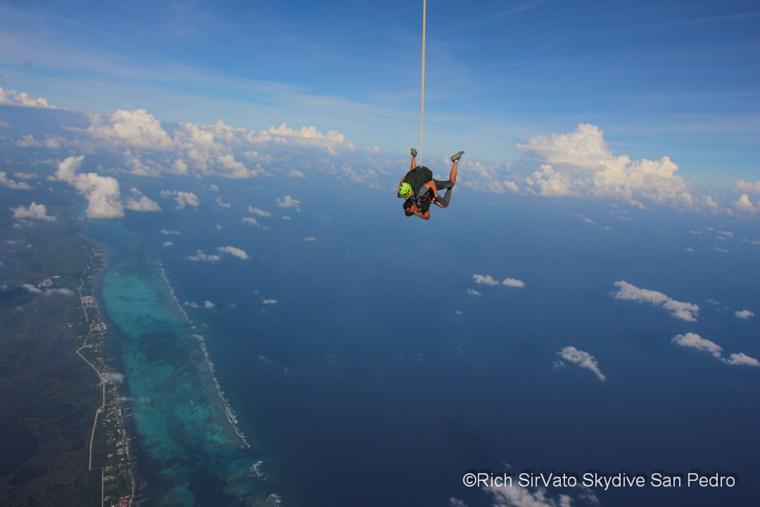 From then on, it was pure adrenaline-fueled yelps of delight. As the parachute fluttered in the hard breeze, and cold wind whipped my cheeks back, I marveled at the sight below. Hues of blue not found in the crayon box made up the Caribbean Sea. In the distance I could see the white crest of the waves breaking over the reef, and directly below, development, mangroves, patches of wooded land, and more blues and greens of the water that surrounds us.