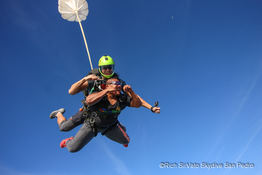 2PM arrived and I made my way to the Skydive San Pedro dock, anxious to meet company owner Abby Nawrocki. She and I had communicated for over a week, trying to set me up for the thrill of a lifetime. I finally was able to put face to name, and in the process, met Max Lesziak, my tandem instructor, and Rich SirVato, videographer and photographer extraordinaire. I was accompanied by co-worker Chelsea, who had a case of the butterflies too…especially when I had to fill in the release form!