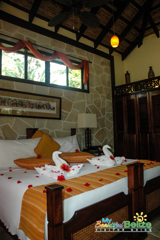 At night, darkness brings out the blanket of stars overhead as the jungle tunes take on a different sound, while you soak in the indoor/outdoor tub sipping on some crisp champagne. As the moon makes its way across the sky, you burrow into warm blankets atop your handmade bed crafted from Belizean hardwoods.
