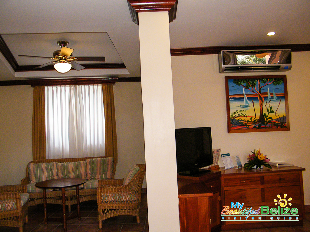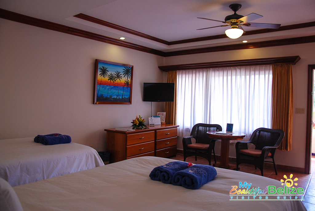 Along with the vibrant new uniforms, the 43 rooms also saw upgrades to best suit the need of clients. Every single room received a little TLC. The 13 standards rooms received new bedding, a touch of Belizean art, an in room safe and the ever so important flat screen – you know, for when the view of the reef gets to be too much!