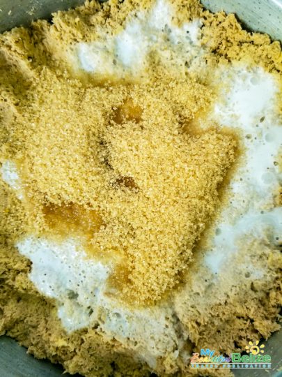I’d watch in eager anticipation as she began the mixing process, the white flesh of the potatoes oxidizing slightly, turning color as sugar and coconut milk were added. When the mixture was at the desired consistency and sweetness – using the classic finger licking test – she would lay the smoked banana leaf (torn in pieces) to fit the pan.