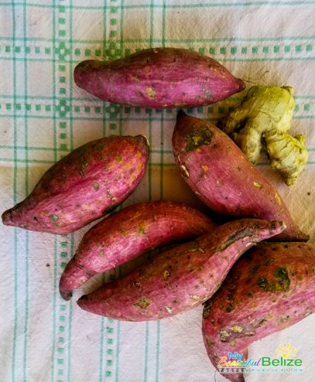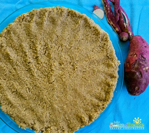 Possibly my favorite treat, especially around the holidays, is the Sweet Potato Pudding. Ground sweet potatoes (purple skinned with starchy white flesh), freshly grated ginger, some thick, creamy coconut milk, and brown sugar to enhance the sweet potato are all mixed and placed in a pan to bake till it’s a gorgeous dark hue.