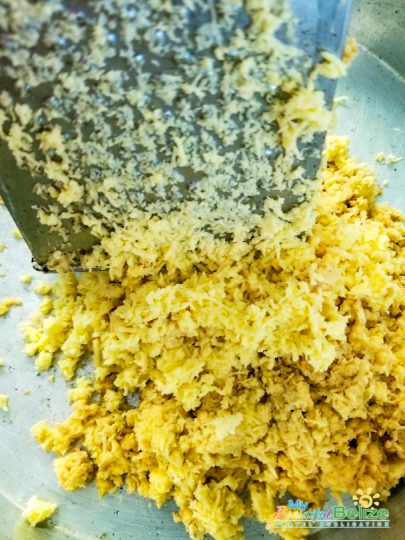 Once I was tired of the grating, she would take over, finishing up the potatoes and the coconut separately. Hot water over the coconut brings out the fresh milk, and a welcome addition to the pudding mixture.