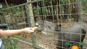 Of course, we didn’t just get to see Junior Buddy. Oh no, our trip took us all through the zoo, saying hello and handing out peanuts to the iridescent Scarlet Macaws, admiring deer ‘in velvet’, feeding delicious papayas to the delightful tapirs (our national animal). We pinched our noses as we ran by the peccaries – whoo boy they were stinky! – but they were in heaven rolling around in their mud. The spider monkeys decided NOT to swing for us, preferring to peek out from behind the brush on the ground. Cheeky little buggers!