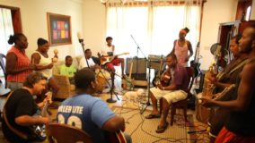 It was January 2007, we had just landed on shore after some delightful sailing on board the Rum Punch II with George Eiley, when we bumped into our good buddy Ebbe Weile (and rock n’ roller extraordinaire) at the Sundiver Resort. It had been a hot sunny day, and while the rum punch was refreshing on the boat, we were still very much feeling the heat and humidity of that warm afternoon. Ebbe suggested we come into the air conditioned Mata Grande recording studio where Andy Palacio & The Garifuna Collective’s new, unreleased album Wátina, sat in it’s final cut – to cool down of course.