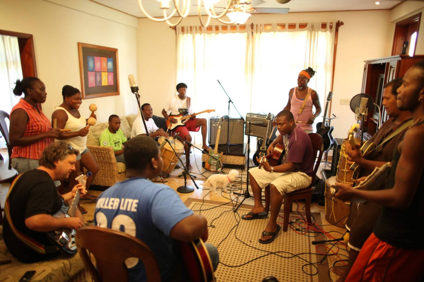 It was January 2007, we had just landed on shore after some delightful sailing on board the Rum Punch II with George Eiley, when we bumped into our good buddy Ebbe Weile (and rock n’ roller extraordinaire) at the Sundiver Resort. It had been a hot sunny day, and while the rum punch was refreshing on the boat, we were still very much feeling the heat and humidity of that warm afternoon. Ebbe suggested we come into the air conditioned Mata Grande recording studio where Andy Palacio & The Garifuna Collective’s new, unreleased album Wátina, sat in it’s final cut – to cool down of course.