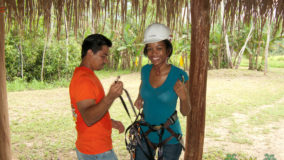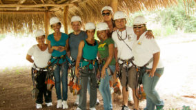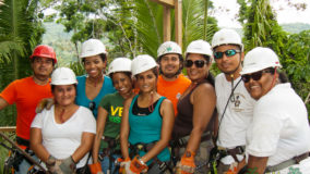 Now here I hung, having been strapped in by my gentle guide Manuel. Egging me on were my tour buddies – the most encouraging and fun group a girl could possibly ask for. Their words of encouragement helped make my mind up (okay, so did the thought of having to report back that I chickened out). I bent my knees, swung my behind out of the platform and kicked off gently and I was gone!! The green of any variety of trees swished past me as I whooped with exhilaration – wheee!!! Wind in my face, my helmet firmly strapped on and video camera capturing my first jaunt down a zip line it was almost too soon before I executed a perfect landing for our second zip. I had done it – one down, eleven more to go.