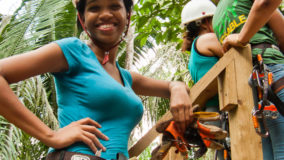 As I hung several feet up in the air, held up by what I genuinely felt were mere woven threads, I began to question my decision. Not only had I happily signed the release form, I also had begged to do this. WHY would a reasonably sane person like me ask to be strapped up and hung on a few wire cables? It couldn’t possibly be because the call of the jungle had been roaring in my head for weeks? It couldn’t possibly be because as out of shape as I am, I firmly believe I can scale mountains and positively run down a waterfall. No, I’m insane…that’s the only possible explanation.