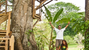 It’s a barrel of laughs when we get stuck on the easiest looking line. One of our girls (we’re not naming names!) had to be rescued midair by our very handsome guide. The things we do for a hug in the jungle! Any fear we had was finally eased, and the remaining zips were a breeze, even the 2,300 foot one. The warmth of the humid jungle air cooled down significantly as we all took turns zipping down the longest line of the day. Lunch at Mama Noots was calling, and after the morning workout, we were all starving and thirsty. Something about pretending to be Tarzan and Jane halfway up a mountain can build up quite the appetite. Our final zip led us to the crook of a giant tree right in the front yard of Mama Noots. How convenient.