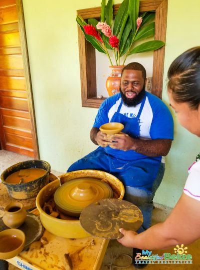 Through much laughter and camaraderie, one of our group members manages to create a small bowl, after much painstaking effort. While the use of a modern spinning wheel is employed to create these pieces, it only serves as a reminder of how truly talented and patient our Maya ancestors were to craft unique pieces without access to such tools.