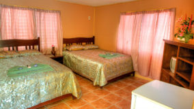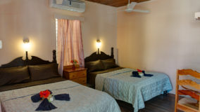 Tropical Paradise Hotel offers true variety when it comes to accommodations; all just a stone’s throw from the crystalline waters of the Caribbean Sea. One can choose the economy room, with two beds and a choice of ceiling fan or air conditioning. Just a bit up from that are the regular rooms or cabanas with two beds and ceiling fans. Now, trust me – even though these rooms don’t have air conditioning – you’d hardly notice. The constant flow of the cool tropical trade-winds at night time along with the rustling of the palm leaves outside your window create the perfect ambience to quickly whisk you to la-la land.