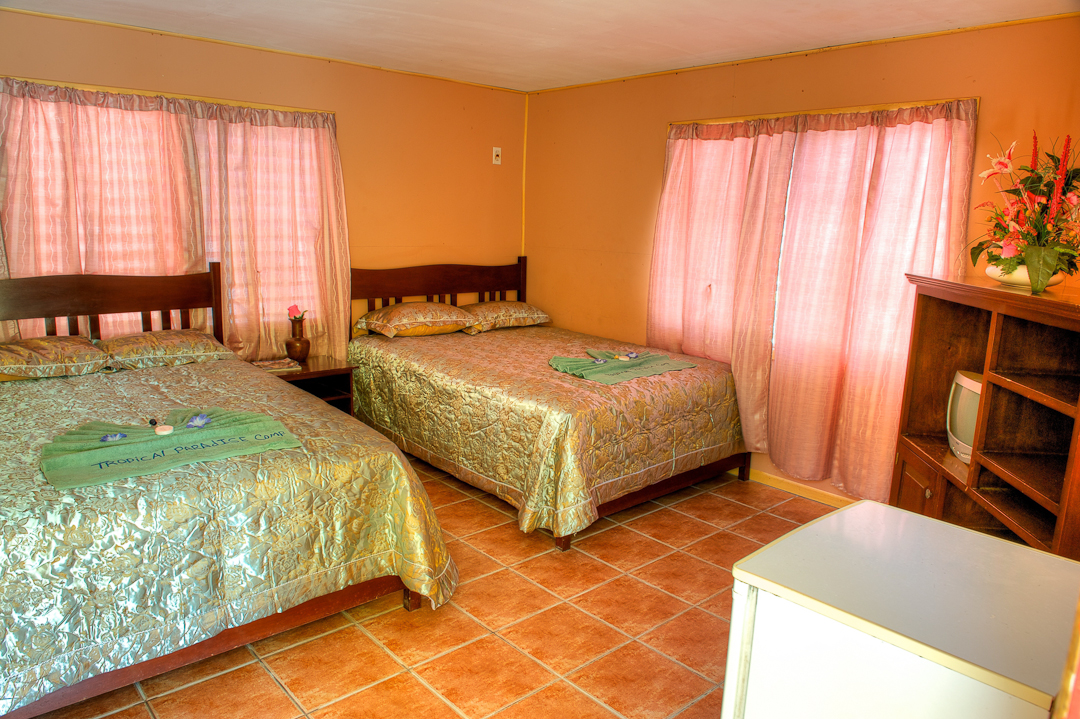 Tropical Paradise Hotel offers true variety when it comes to accommodations; all just a stone’s throw from the crystalline waters of the Caribbean Sea. One can choose the economy room, with two beds and a choice of ceiling fan or air conditioning. Just a bit up from that are the regular rooms or cabanas with two beds and ceiling fans. Now, trust me – even though these rooms don’t have air conditioning – you’d hardly notice. The constant flow of the cool tropical trade-winds at night time along with the rustling of the palm leaves outside your window create the perfect ambience to quickly whisk you to la-la land.