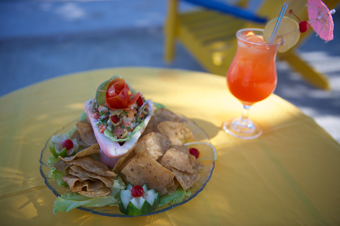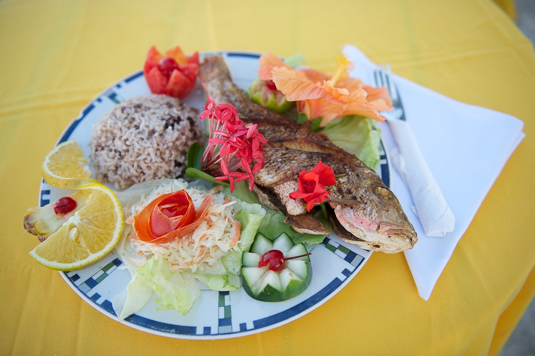 With my new partner in crime (and date for the night), I made my way to the dining area. Of course our night couldn’t start without a few drinks; I mean it had been a very hot day out in the sun on the beach and we were very thirsty. Tropical Paradise’s blue margarita and tasty rum punch were just what the doctor ordered. Refreshed, we decide to “live the moment” and try the ever famous conch ceviche. Neither my dinner date nor I are conch lovers, but it was calling our name and we had to do something about it. The verdict? Well, the texture wasn’t exactly what I expected; it was really tender and the combination of the vegetables and spices created an extremely fantastic explosion of flavors. You can’t go wrong with freshly made ceviche containing diced tomatoes, onions, cilantro, lime juice, salt and black pepper. Throw in some habanero and fresh, homemade tortilla chips, and you have a great appetizer.