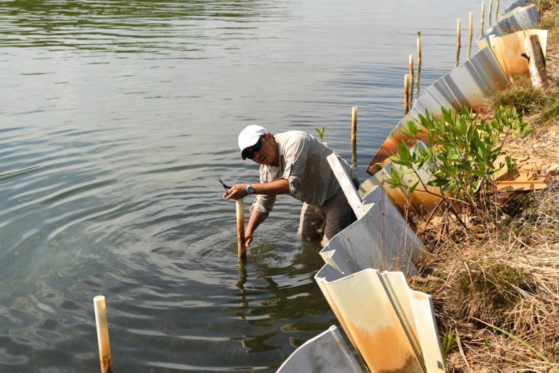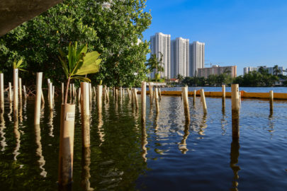 Over the years he has been involved in several mangrove restoration projects with measured success, not only in Belize but in Costa Rica, Aruba, and Miami, U.S. “In 2013 we reforested three islands in Aruba that had been affected by several storms and were almost completely eroded. Seabirds were still nesting in the sand spit although they didn’t stand a chance against the wave action. The success of the mangroves, despite the conditions, has been a catalyst to expand the project to other areas. In 2015 we assisted a high-profile tourism development in Miami in reforesting their coastline and now that their high-rise towers are almost complete, the project will be expanded to increase the vegetation coverage along the coastline. In Costa Rica, resort owners on the Pacific Coast are now using mangroves to minimize the impacts of erosion. In 2010 we introduced the Riley Encased Methodology (REM) mangroves to San Pedro and several locations in Belize. Our most successful site was in 2014 in San Pedro. It validated our efforts and promised to be an example for coastal developers in Belize. We were inspired that after 2010 the mangroves thrived without additional support and were doing well up to 2014. However, we failed to gain interest in expanding the reforestation project and today none survive. Our lesson is that although our approach was successful, the process must be ongoing, with new mangroves introduced every year and people dedicating their time and investments to safeguard their survival.”