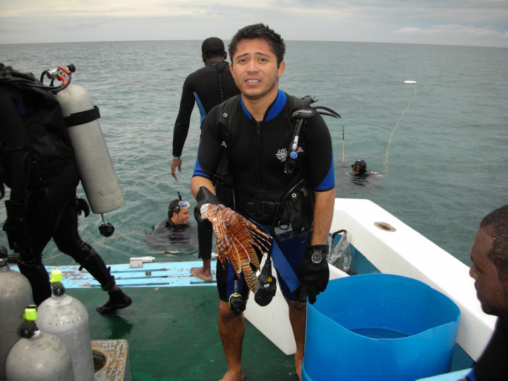 At 17, Valentine finally learned how to swim well enough to take his first diving course. “I worked my butt off for my first summer holiday (as a medical school ‘deserter’) and saved my money to self-finance my scuba course in San Pedro. This is something that I am very proud of. My first dive was a disaster (I got incredibly seasick) and I thought I was done, but thanks to my dive instructor (and the pressure of all the money I had paid for the course), I found the courage to return and finish the course. I was so hooked that throughout my studies in biology at Sacred Heart Junior College and the University of Belize, I pursued a parallel career as a marine guide. By the age of 19, I was already a tour guide, a PADI dive instructor, an Emergency First Response